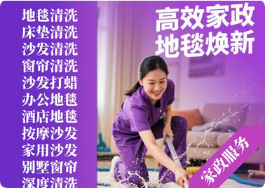 1、家庭保洁:新居开荒保洁、家庭日常保洁,玻璃清洗、卧室、家具、地面清洁、厨房保洁、卫生间保洁;别墅保洁;居家日常保洁;